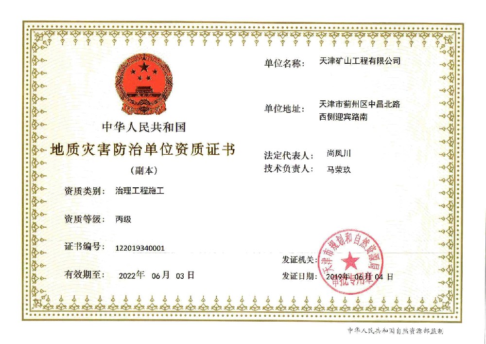 地質(zhì)災害治理工程施工資質(zhì)證書
